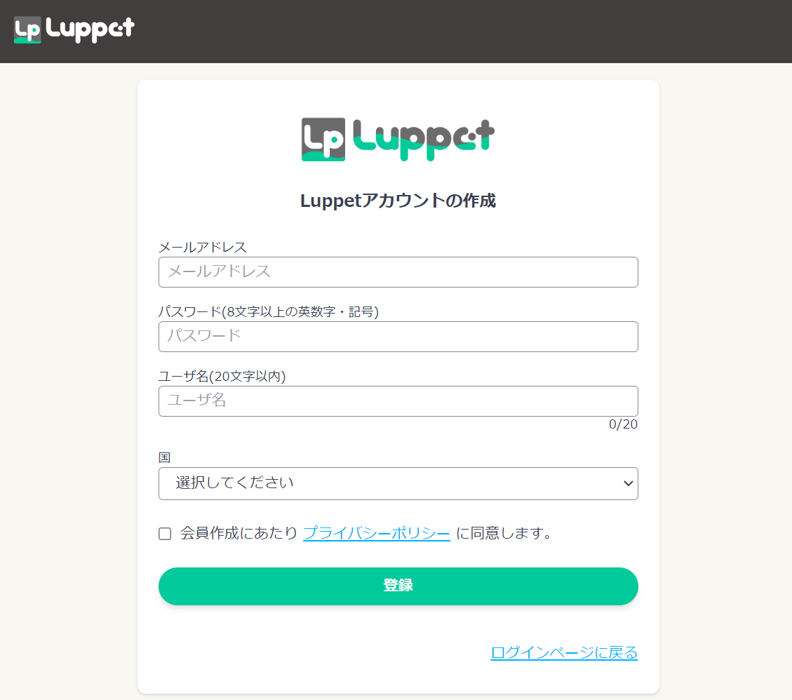 https://account.luppet.jp/signupにアクセスして、会員登録を完了してください。