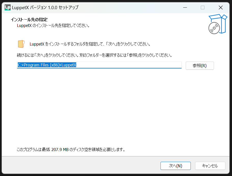 ダウンロードしたLuppetX_{バージョン}_Installer.exeをダブルクリックして開いてください。