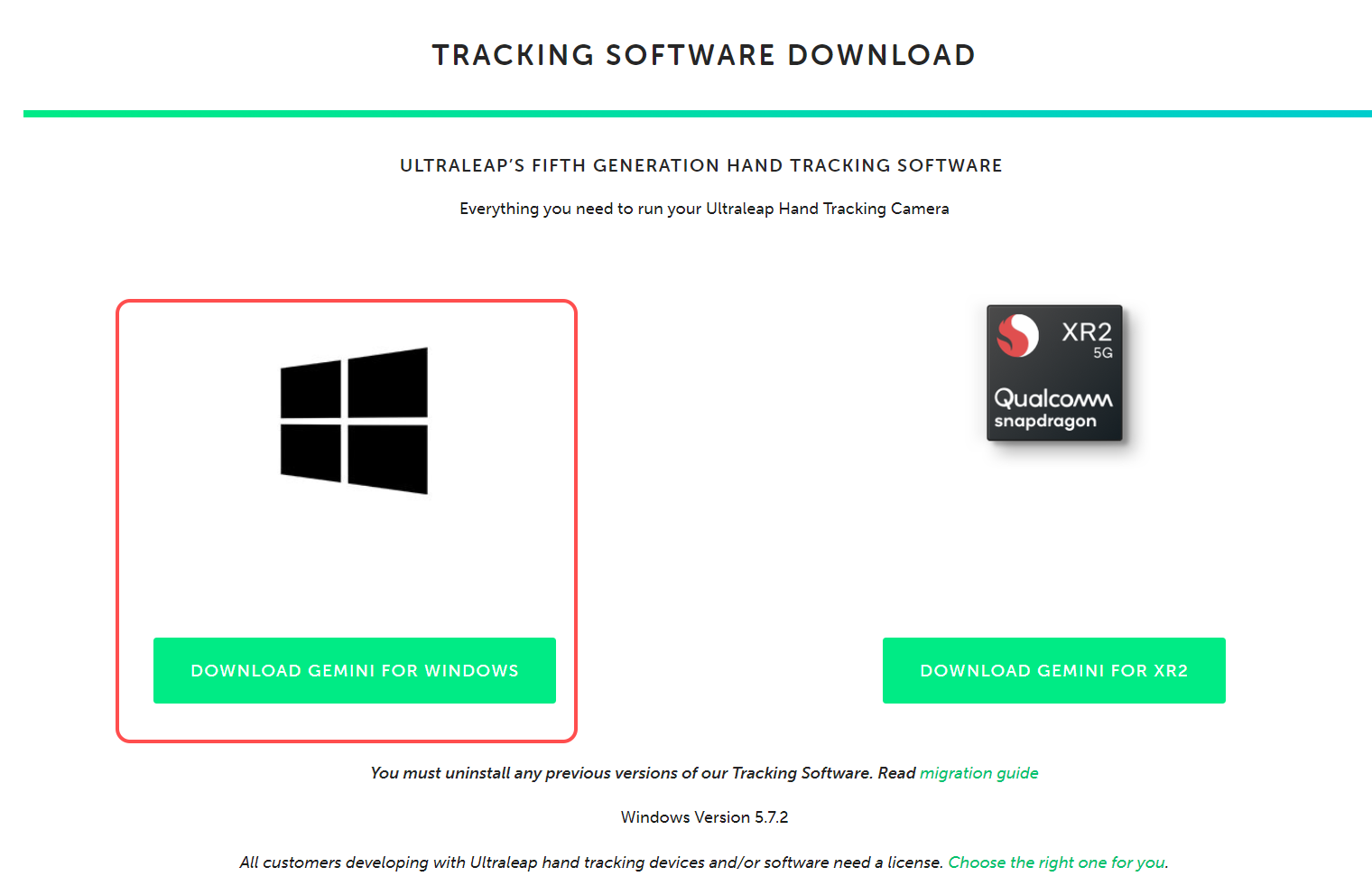 - Ultraleap ソフトウェアインストーラーのダウンロードのページを開いてください。