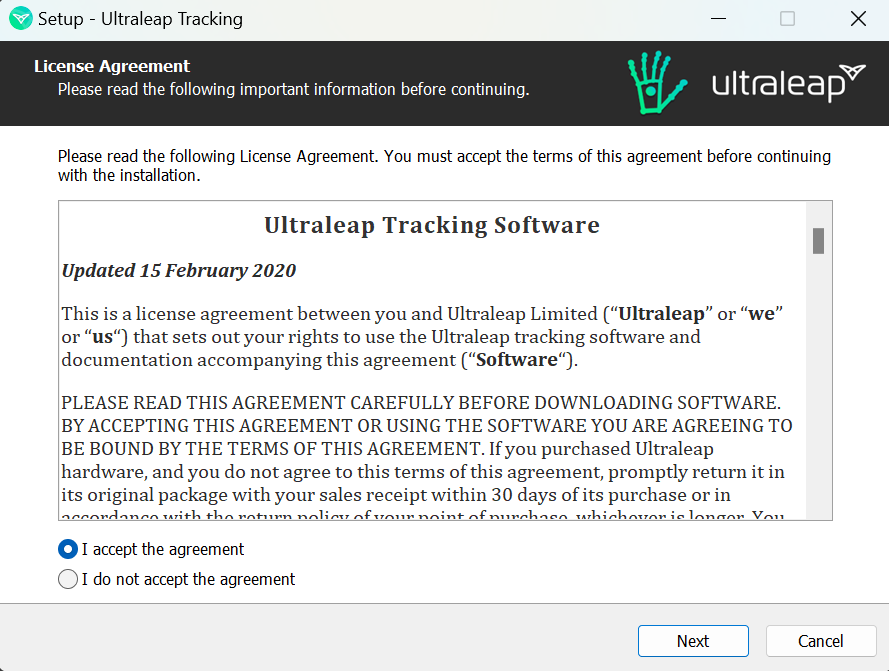 - ダウンロードしたUltraleap_Tracking_Installer_5.x.y.exeを実行して、インストールしてください。