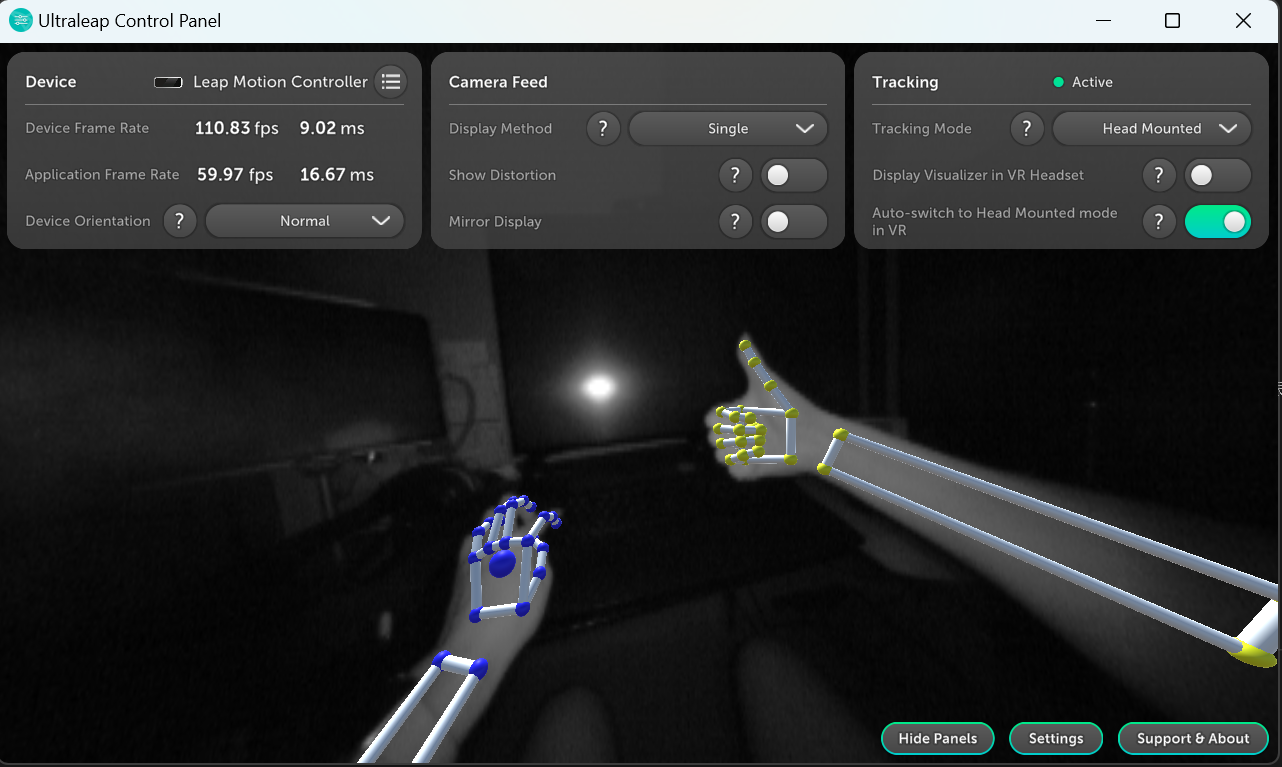 すると以下の画像に示すように、 Ultraleap Tracking Control Panel というものが表示されるはずです。