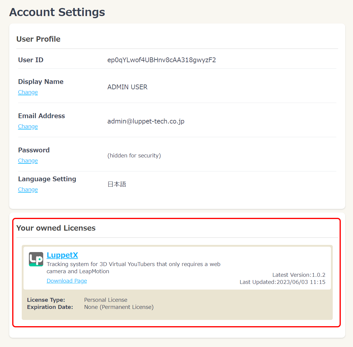 If a license has been granted as shown below, the LuppetX license purchase process is complete.