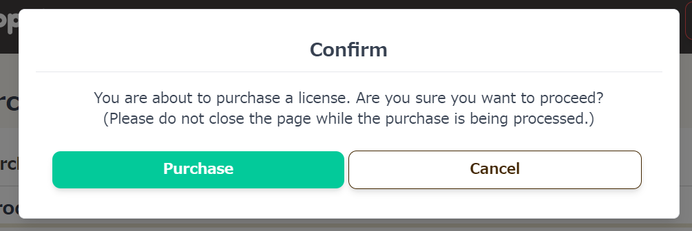 After pressing the purchase button, a purchase confirmation dialog will appear as shown below.