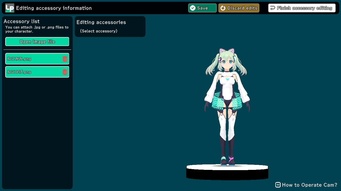 To access the accessories menu, click on the [Edit Accessory] button located at the bottom left corner of the character selection screen.