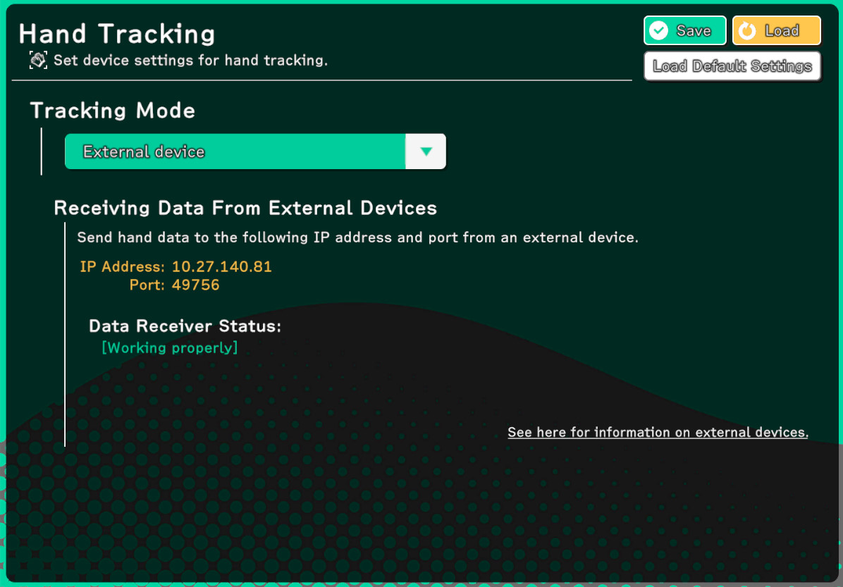change the tracking mode to External Device in both [Face Tracking Settings] and [Hand Tracking Settings].