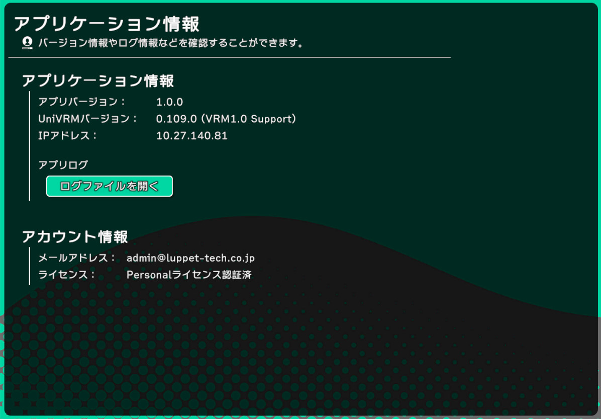 LuppetXや搭載されているUniVRMの情報を表記しています。
