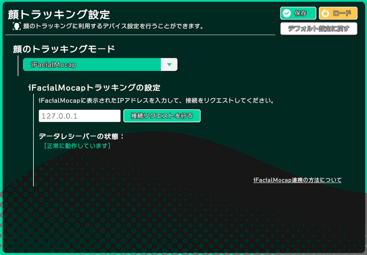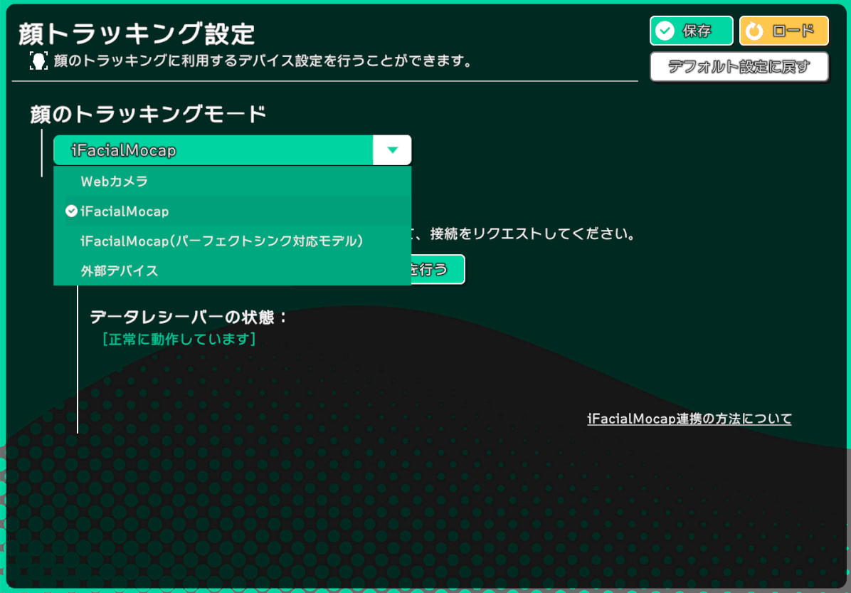 [顔トラッキング設定]から、トラッキングモードを[iFacialMocap]にしてください。